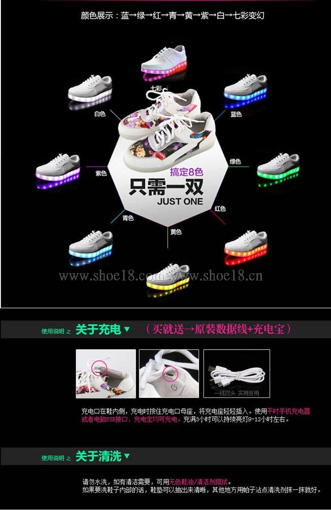 鞋面材質:头层牛皮+底部流行閃燈層LED灯发光真