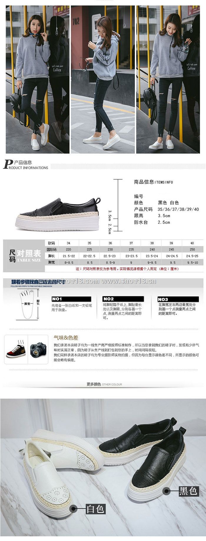 此款有 白色 黑色 尺碼範圍35-40碼