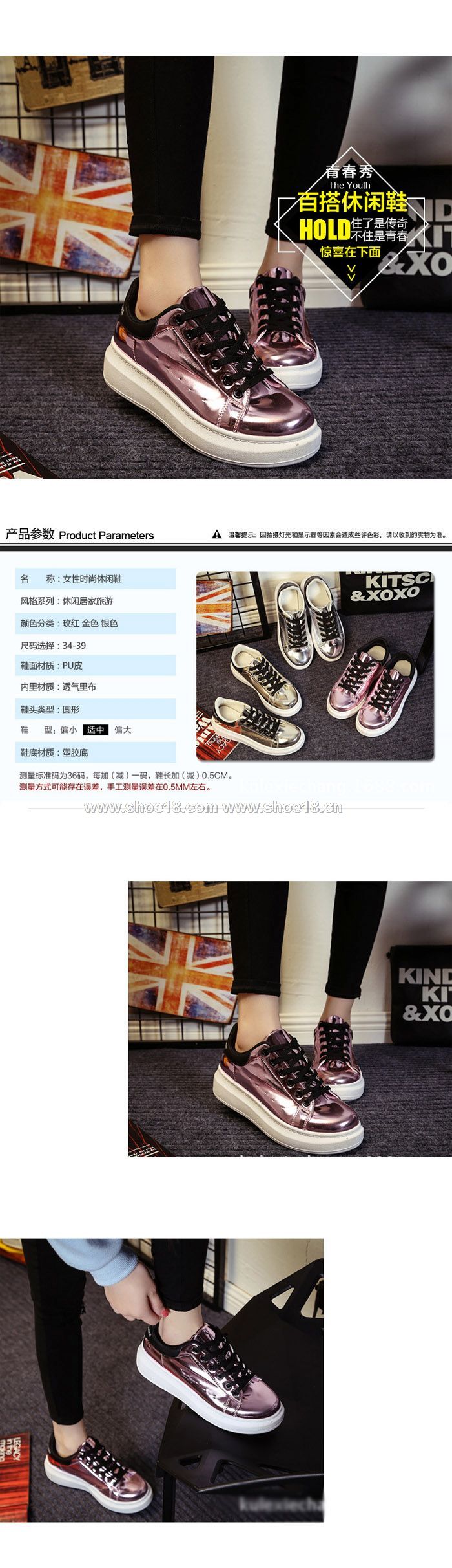 此款有 金色 银色 玫瑰金 尺碼範圍35-40碼