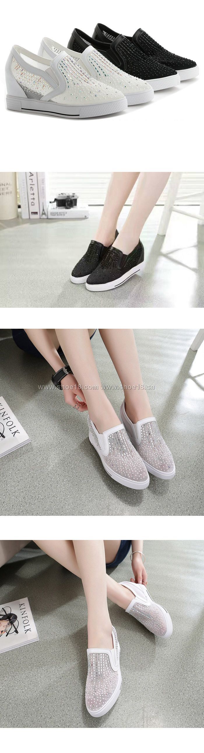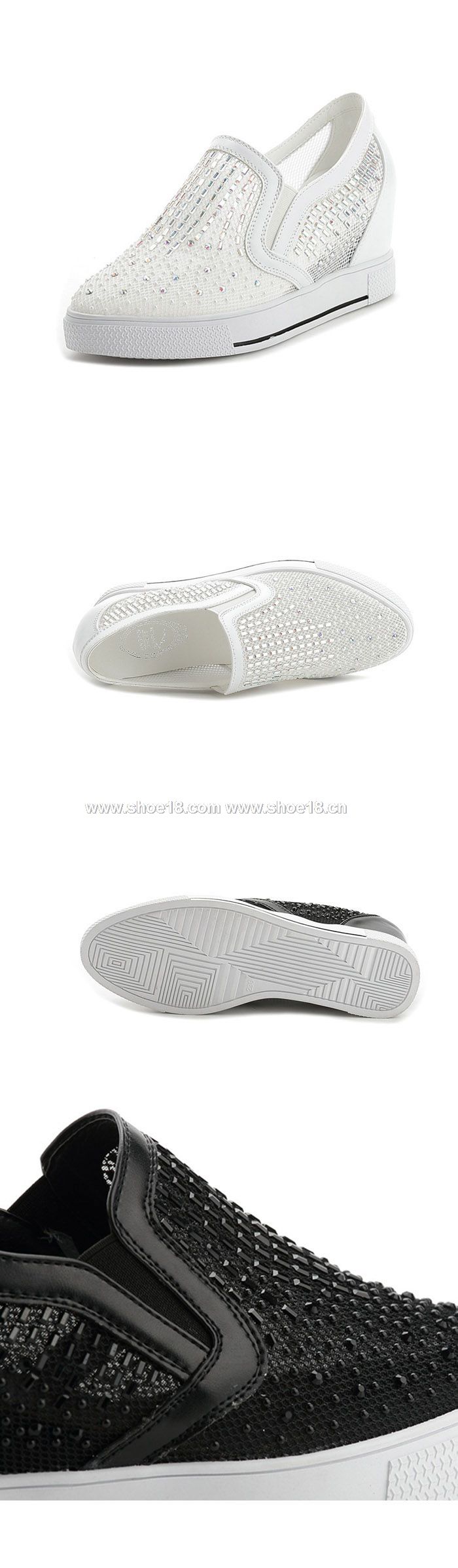 商品顏色:黑色 白色 鞋面材質:优质网纱+高档水钻 內裏材質:舒适透气内里 鞋跟高度:约2.5公分 前防水台:约2.5公分 商品重量:约0.8KG 内增高:约4.3公分