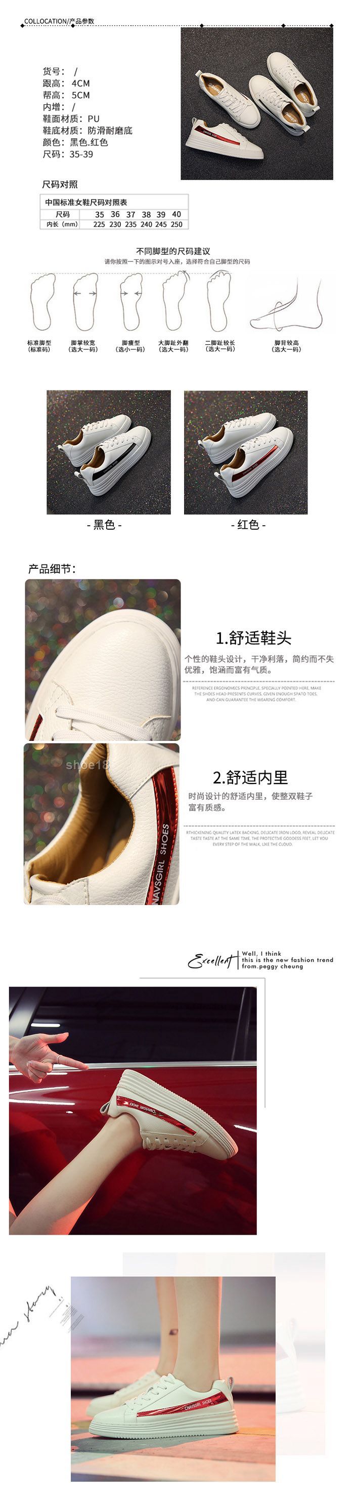 此款有 黑色 紅色 尺碼範圍34-39码