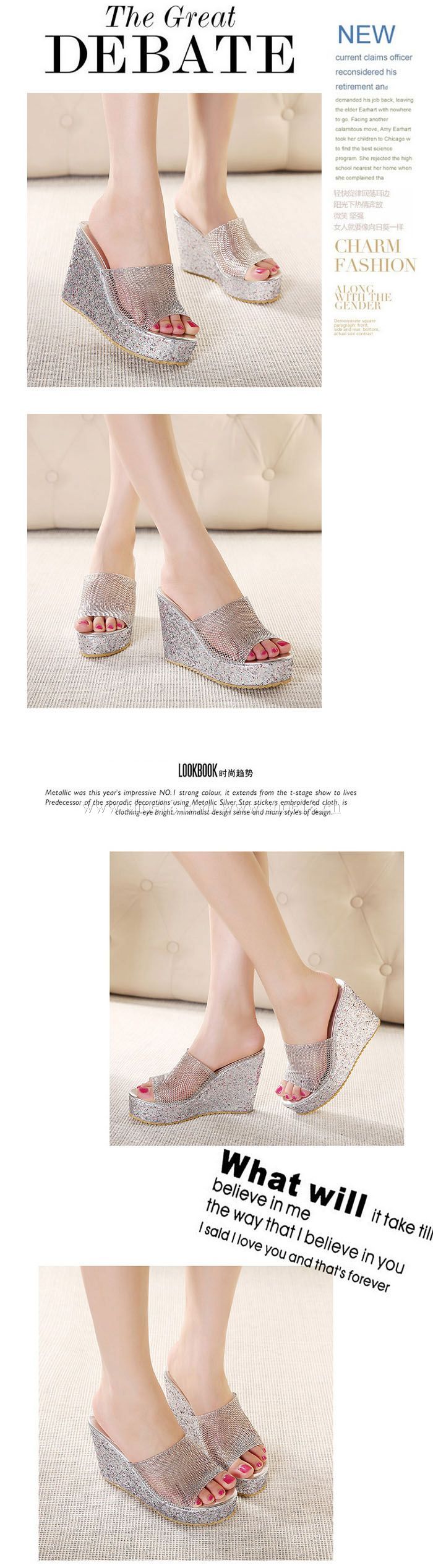 鞋面材質:亮片布