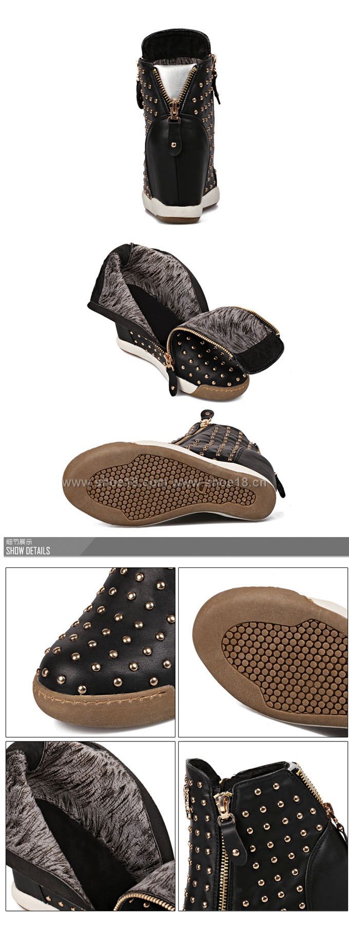 鞋面材質:超细纤维+优质高檔皮革+铆钉