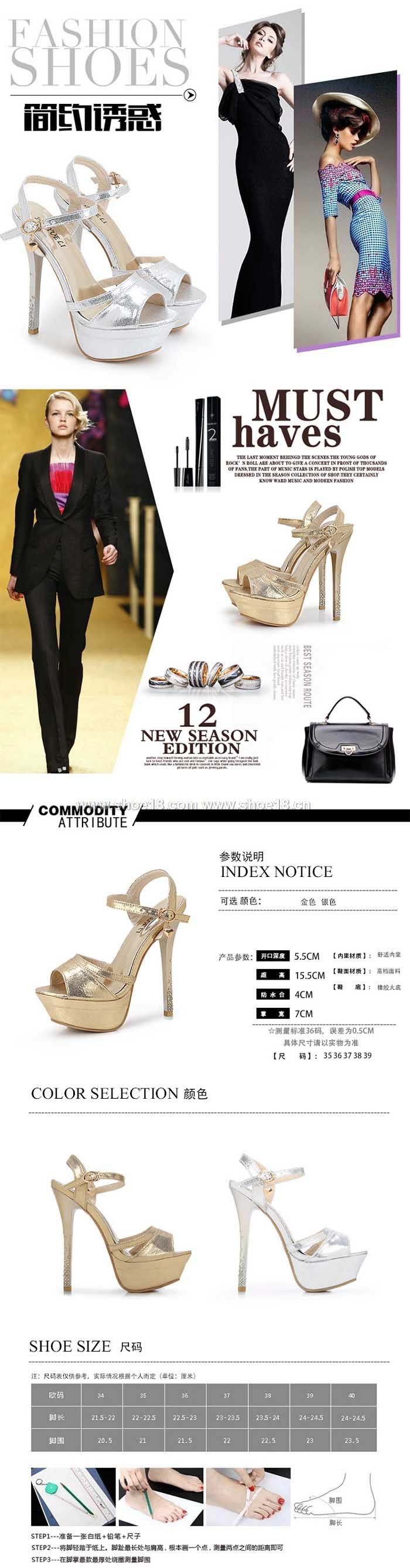 此款有 银色 金色 尺碼範圍34-40碼