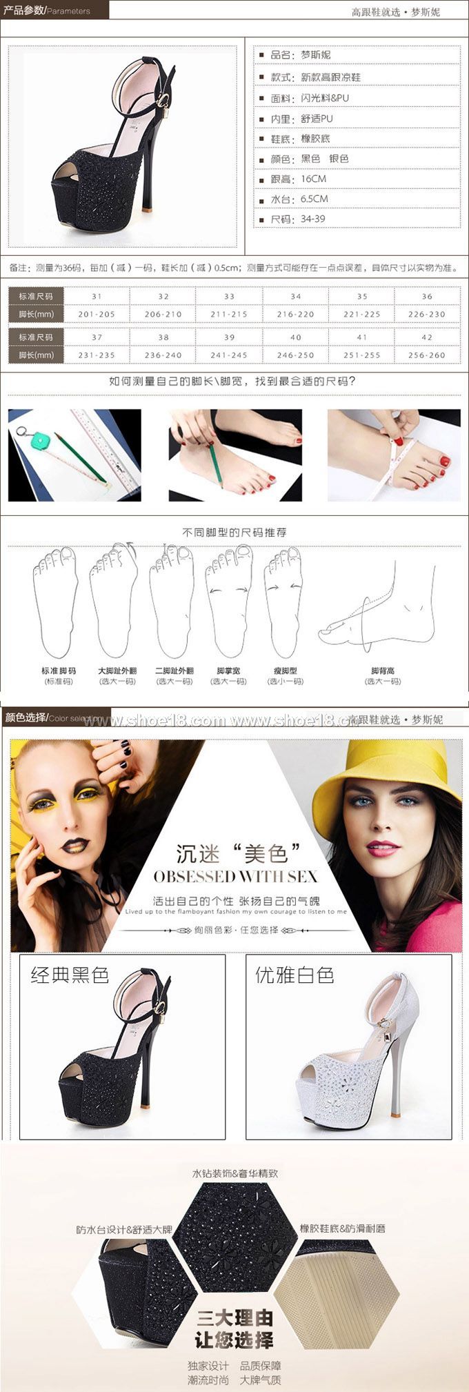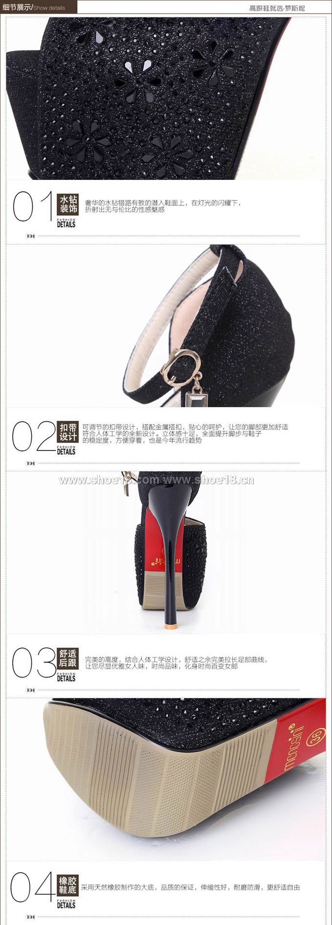 防水台,浅口,流苏,亮片,搭扣,格子,镂空,水钻,脚环绑带