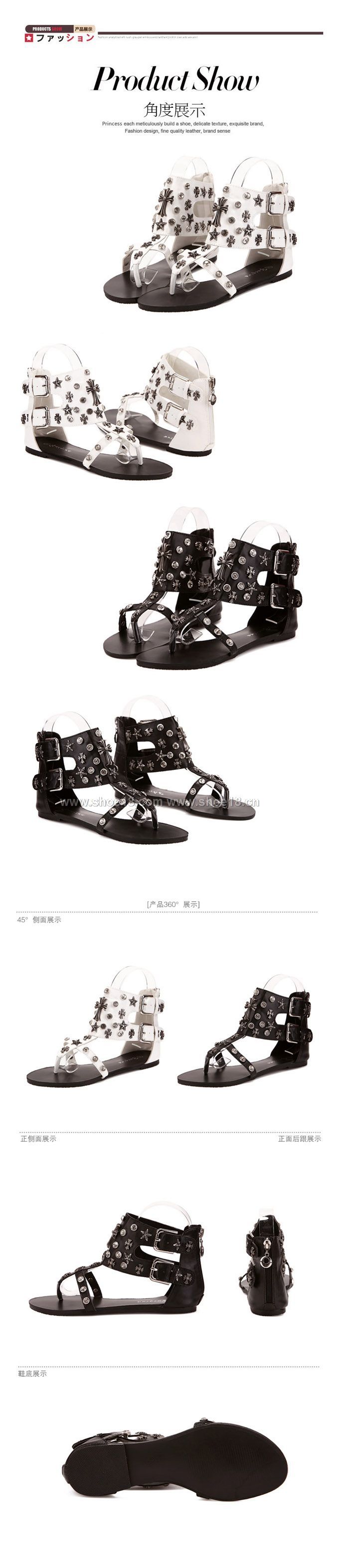 鞋面材質:优质皮革+朋克铆钉