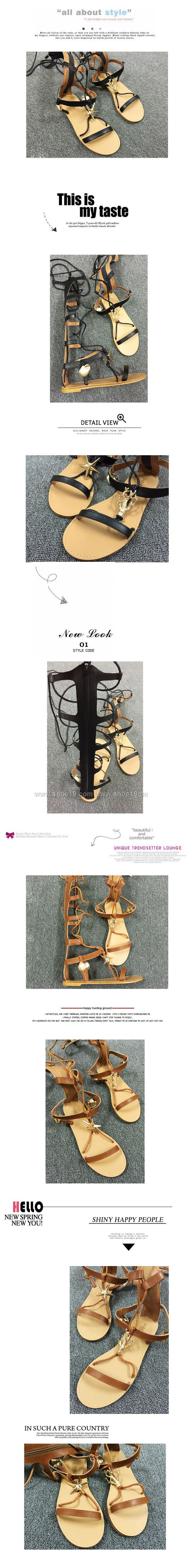 夏季新品INKING POT推荐复古海星贝壳五金装饰绑带平跟凉鞋
