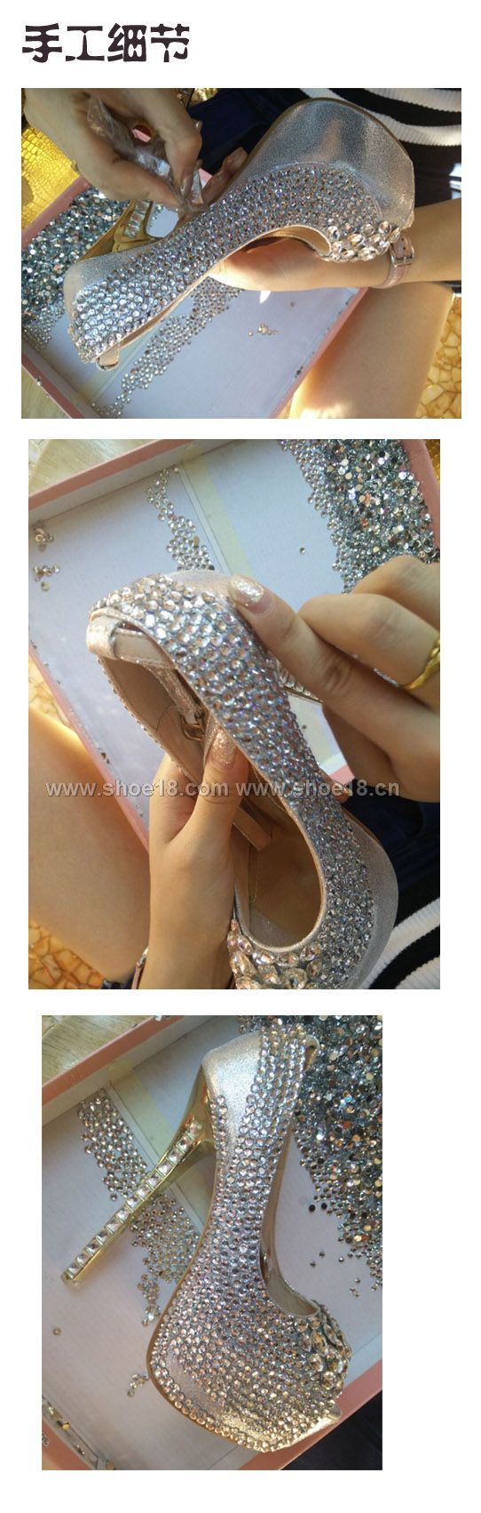 帮面材质:优质进口皮革+手工串珠和水鑽