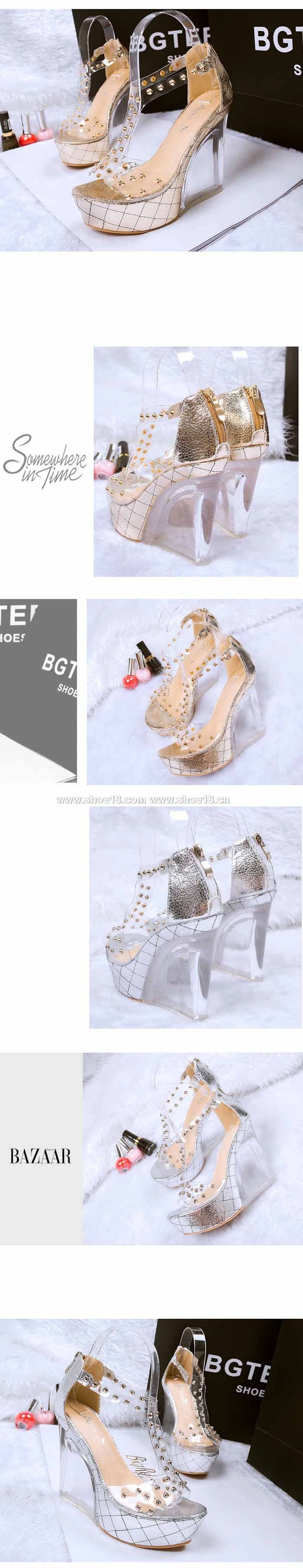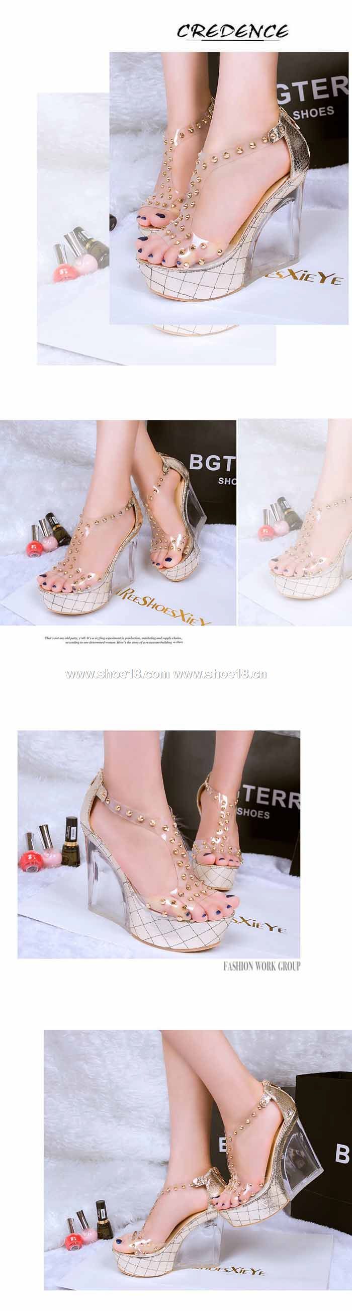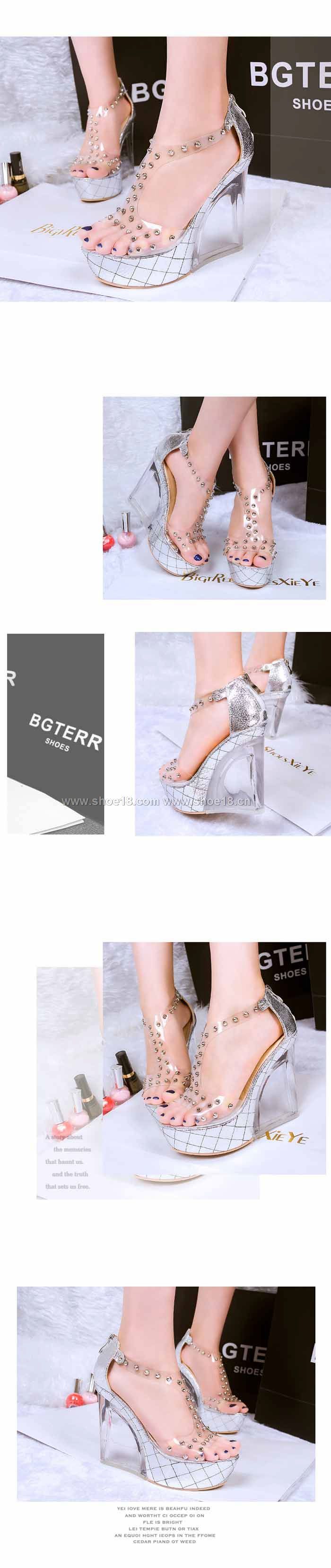 鞋面材質:進口皮革+铆钉+高档水晶鞋跟