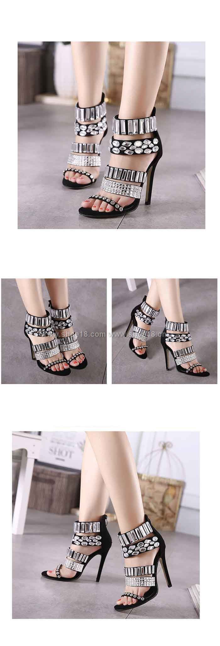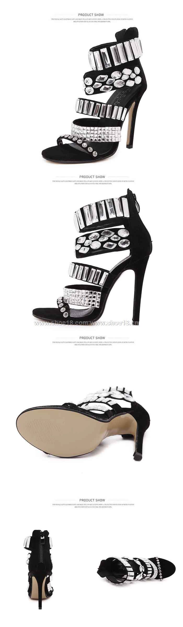 鞋面材質:优质绒面+高档水钻