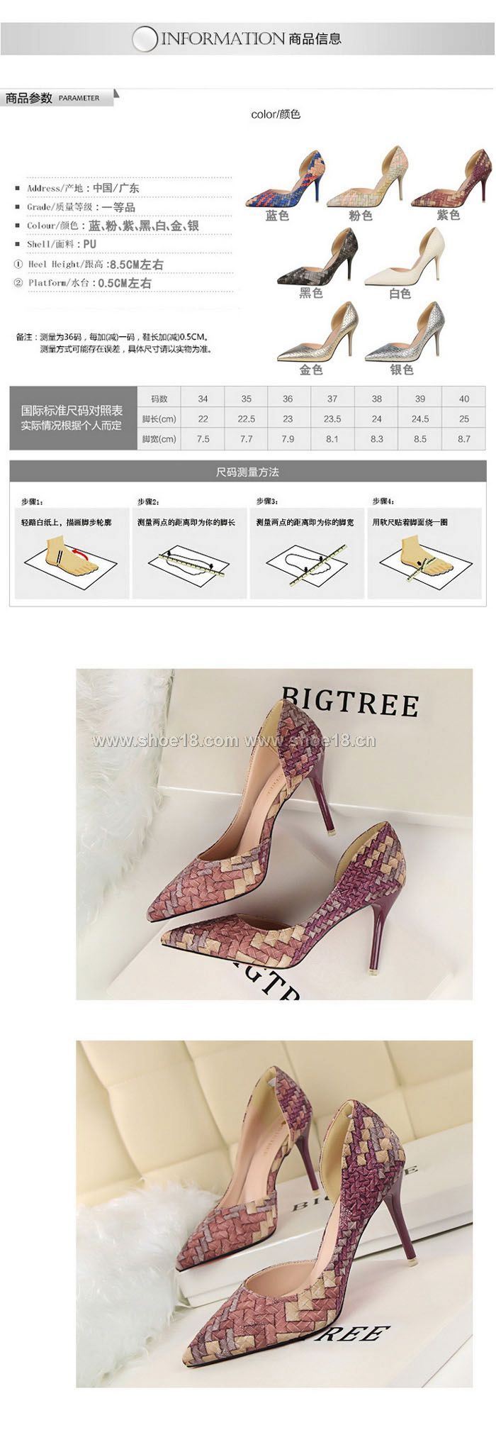 此款有 白色 黑色 紫色 蓝色 金色 银色 粉色 尺碼範圍34-39码
