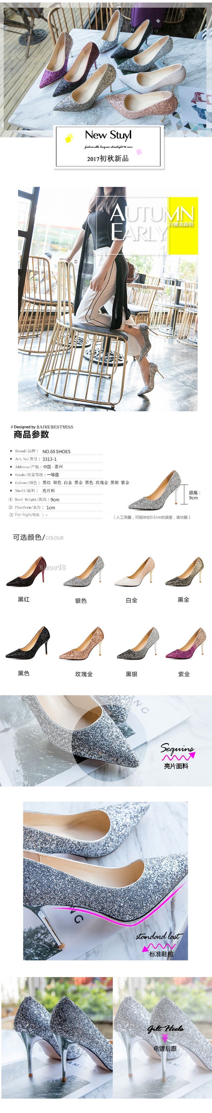此款有 黑红色 白金色 黑金色 玫瑰金 黑银色 紫金色 银色 黑色 尺碼範圍34-39碼