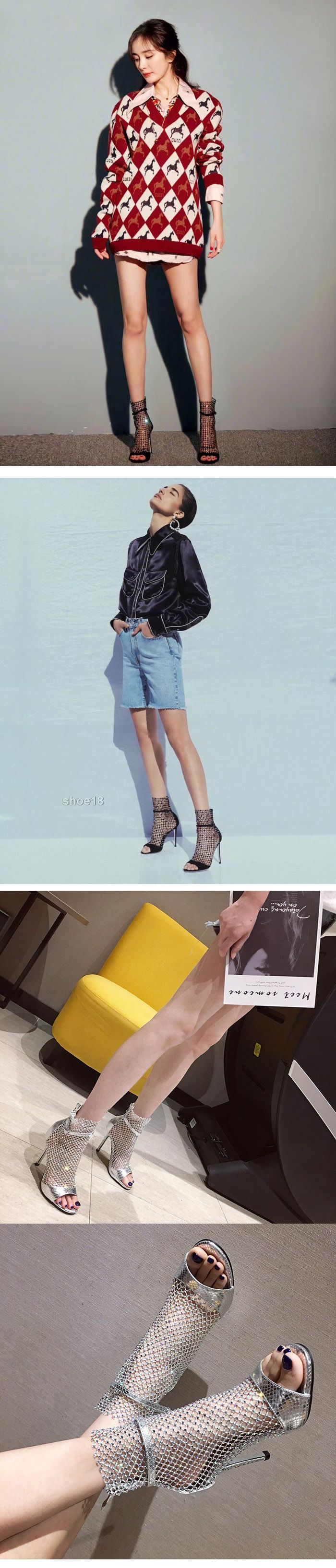 杨幂秦岚明星网纱凉靴