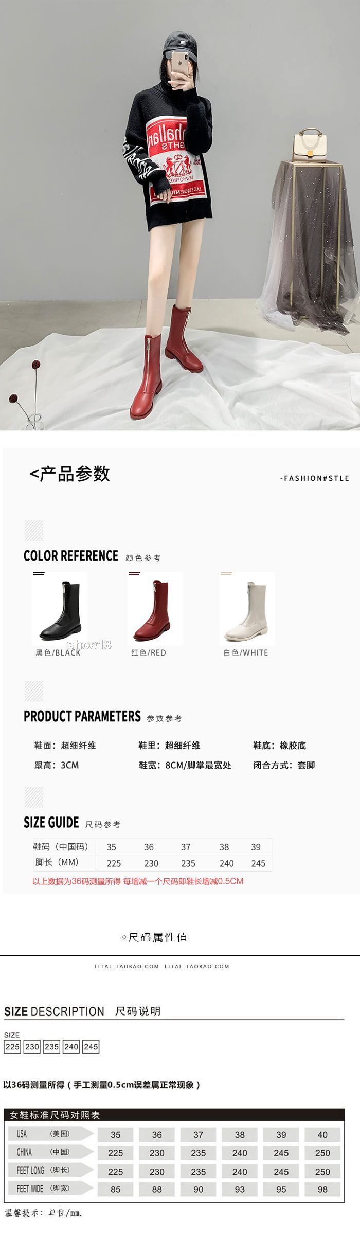 此款有 白色 黑色 酒紅 尺碼範圍35-40码