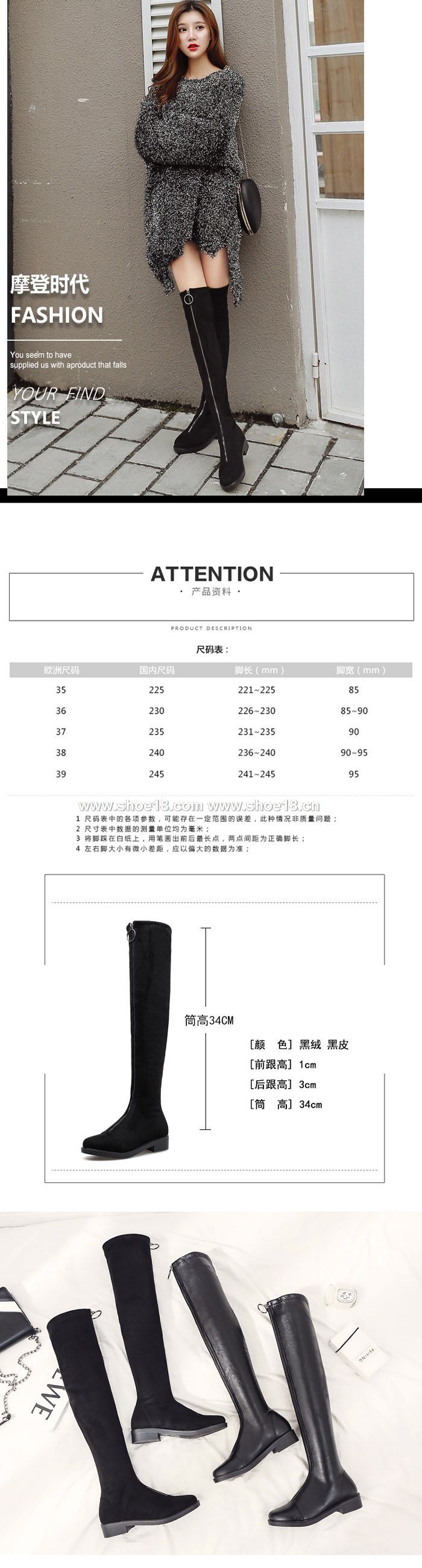 此款有 黑色皮面 黑色绒面 尺碼範圍35-39码