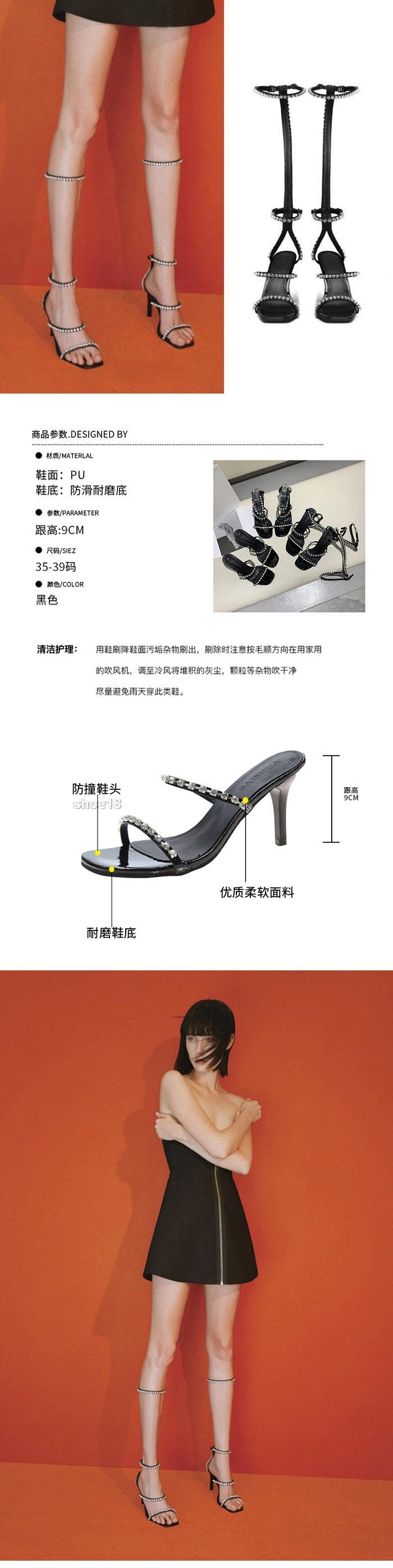 鞋面材質:优质舒适皮革+水鑽