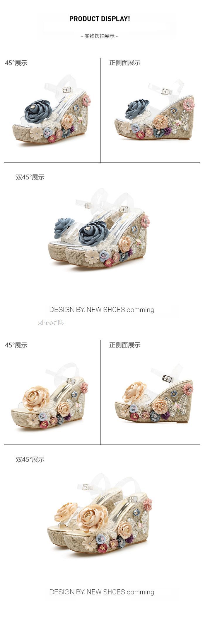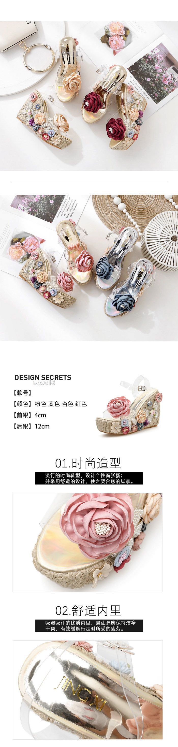此款有 金色(杏大花) 金色(粉大花) 金色(红大花) 银色(藍大花) 尺碼範圍34-40碼