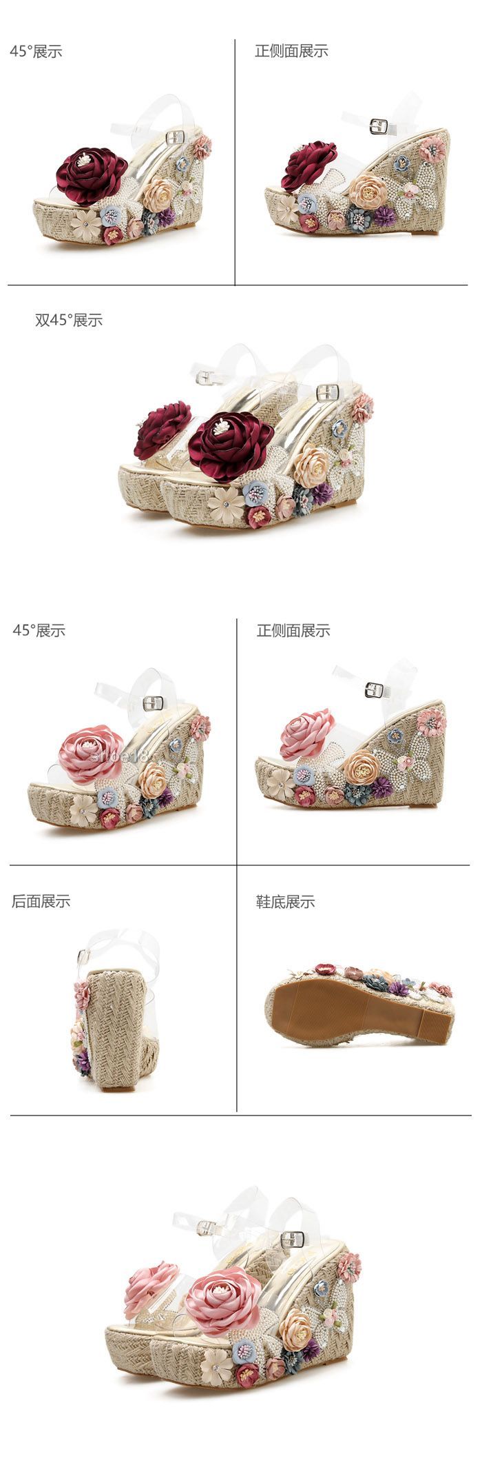 鞋面材質:优质皮革+水鑽+手工大花