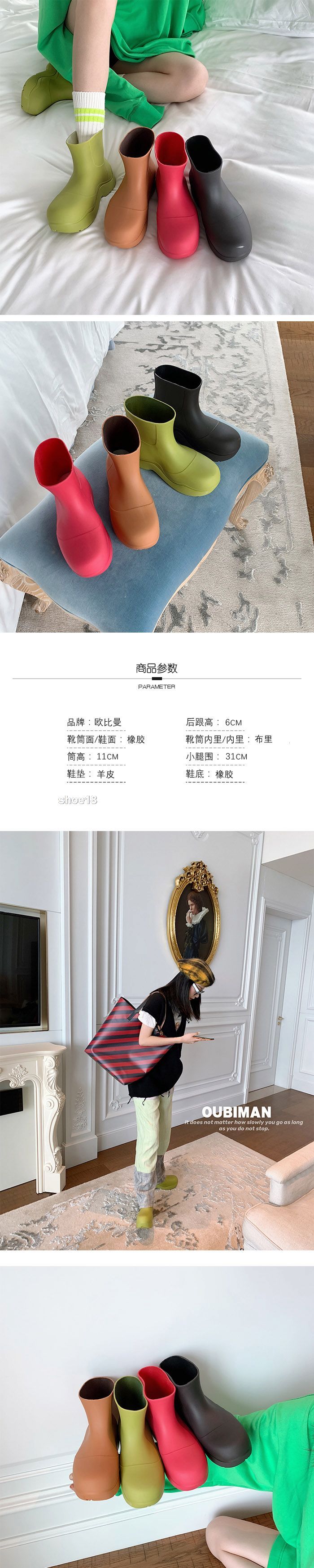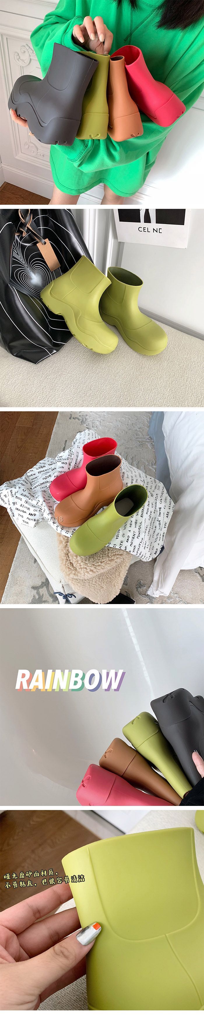 2020秋冬新款BV厚底雨靴防水靴内增高果冻靴阿希哥同款切尔西短靴