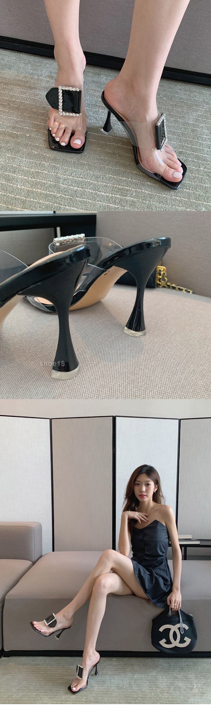 鞋面材质:优质皮革+透明跟