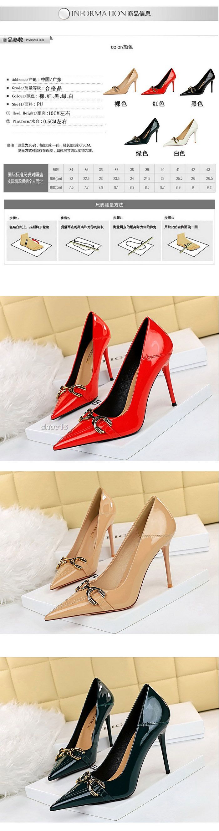 此款有 白色,黑色,红色,绿色,裸色 尺碼範圍34-43碼