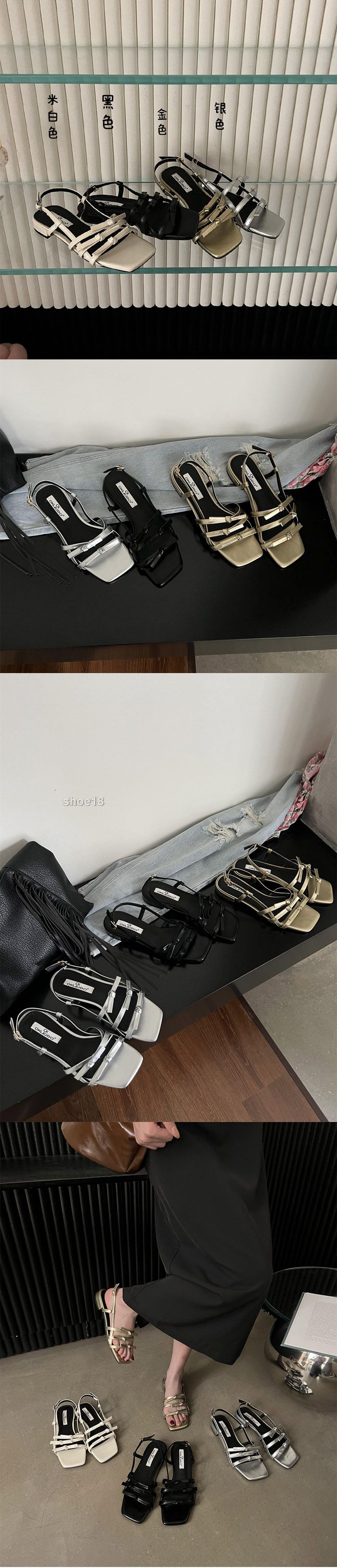 此款有 黑色 米白色 银色 金色 尺碼範圍35-39碼