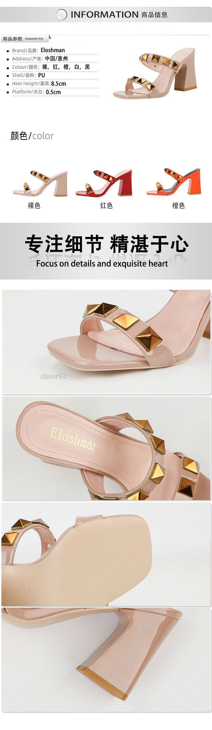 顏色:白色,黑色,橙色,红色,裸色