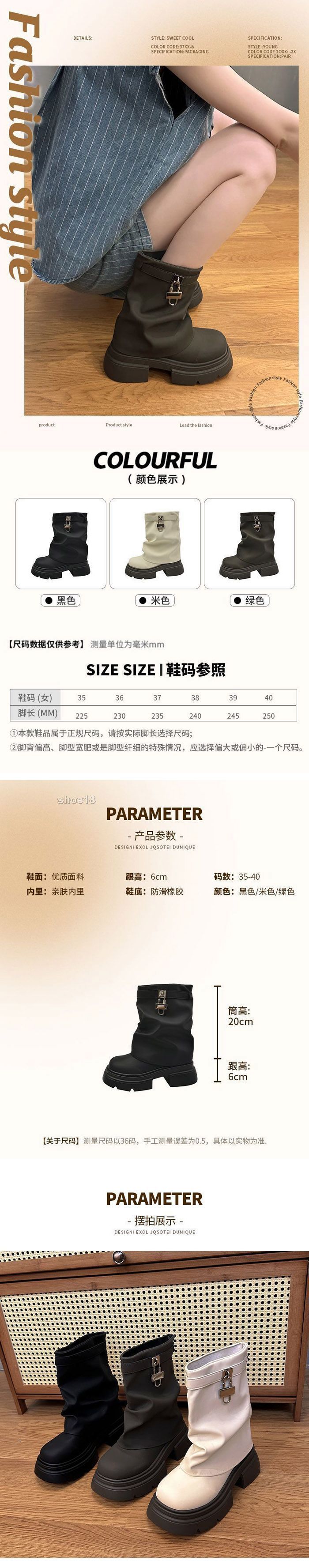 此款有 黑色 绿色 米白色 尺碼範圍35-40碼