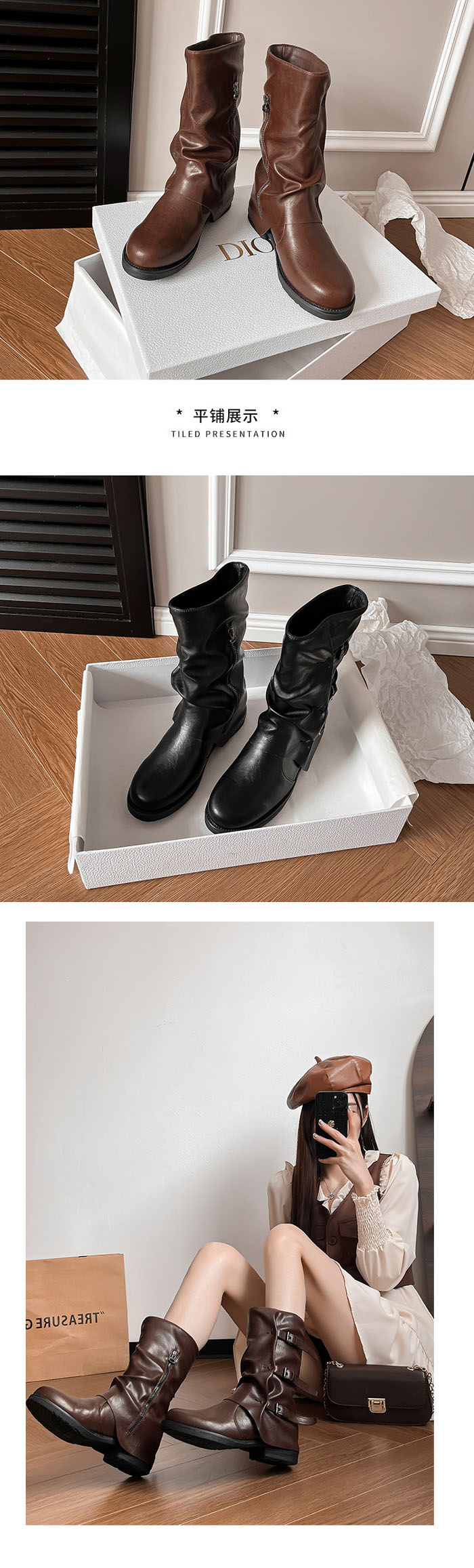 鞋面材質:優質进口皮革+拉链