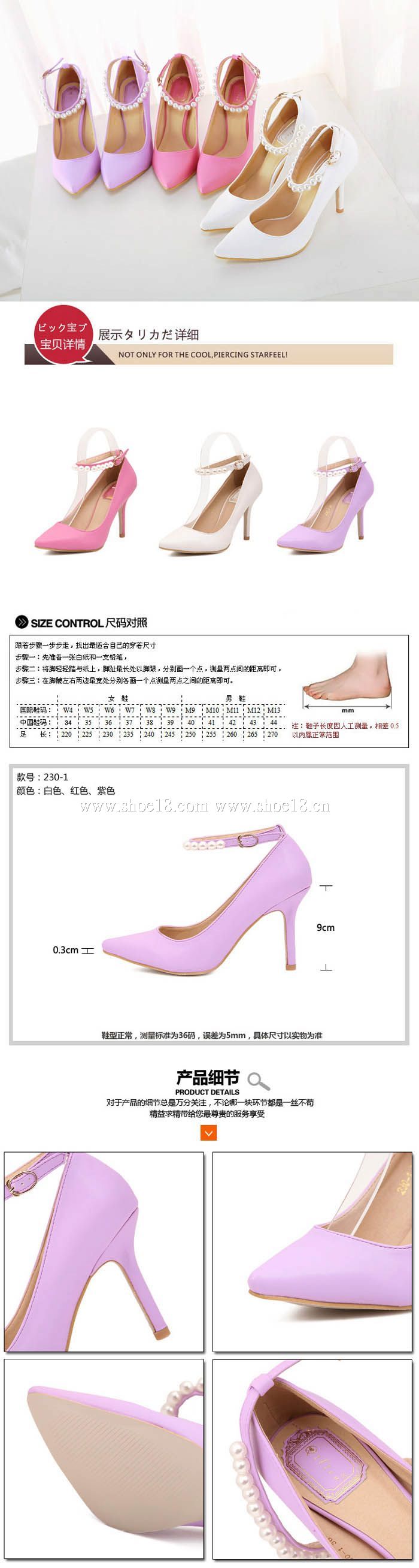 此款有 白色 浅紫色 梅红色 尺碼範圍35-39码