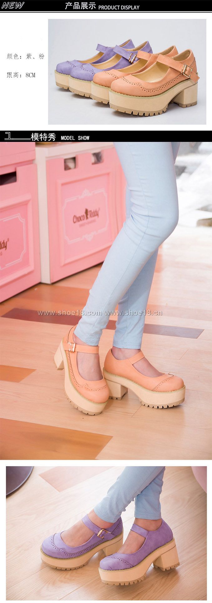 流行元素: 浅口 搭扣 粗跟 松糕跟