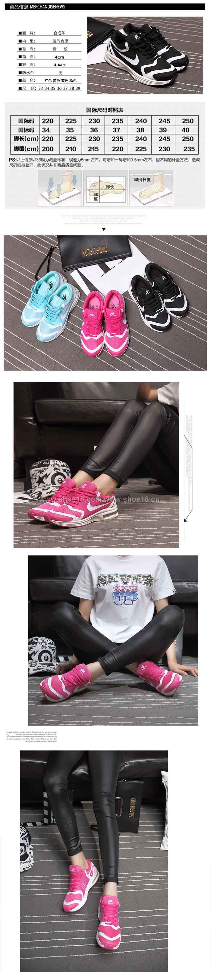 此款有 黑白色 粉红色 湖蓝色 尺碼範圍35-39碼