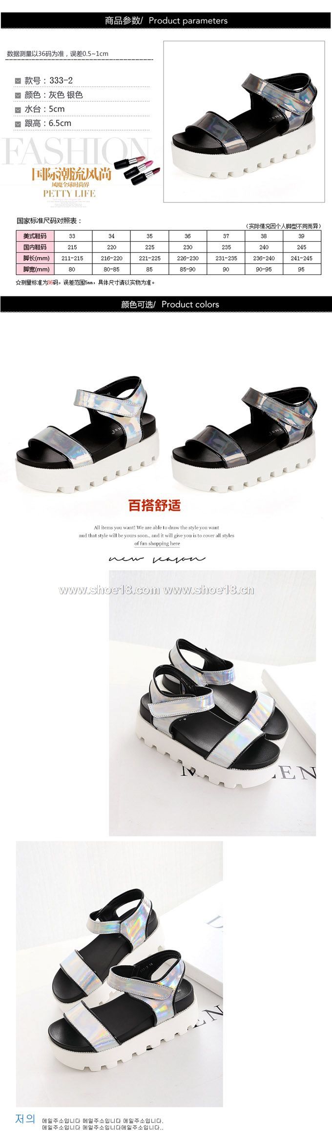 此款有 銀色 灰色 尺碼範圍35-40码