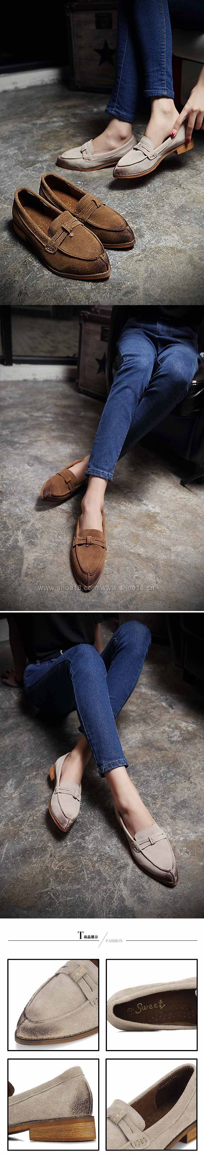 超爆款复古真皮尖头单鞋大量现货