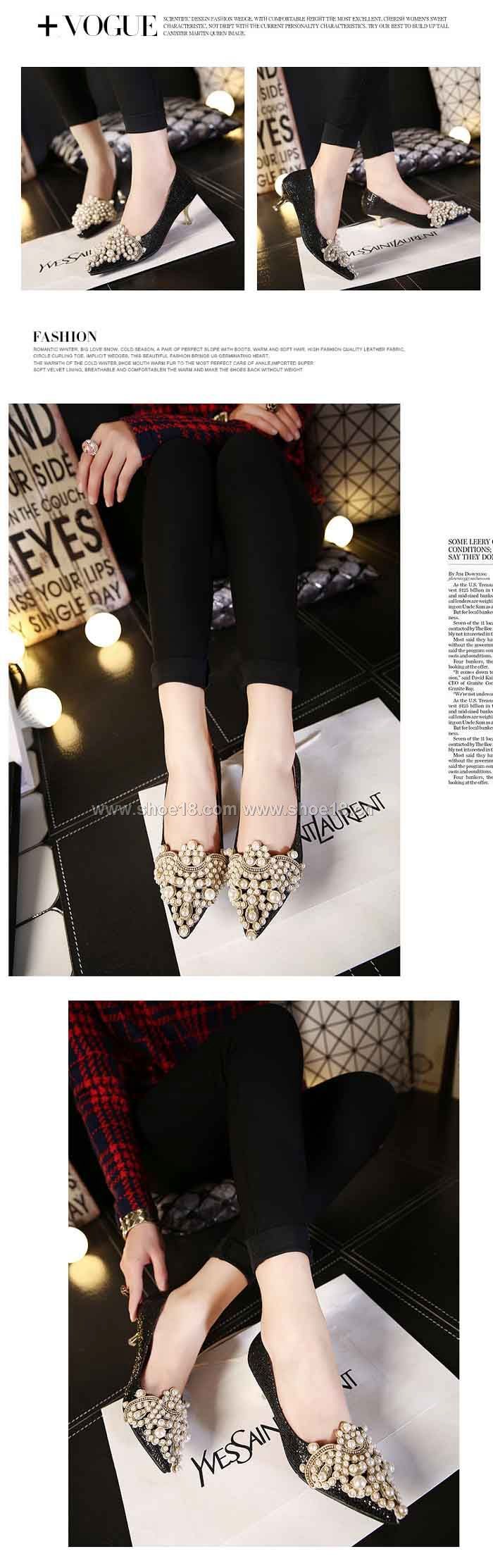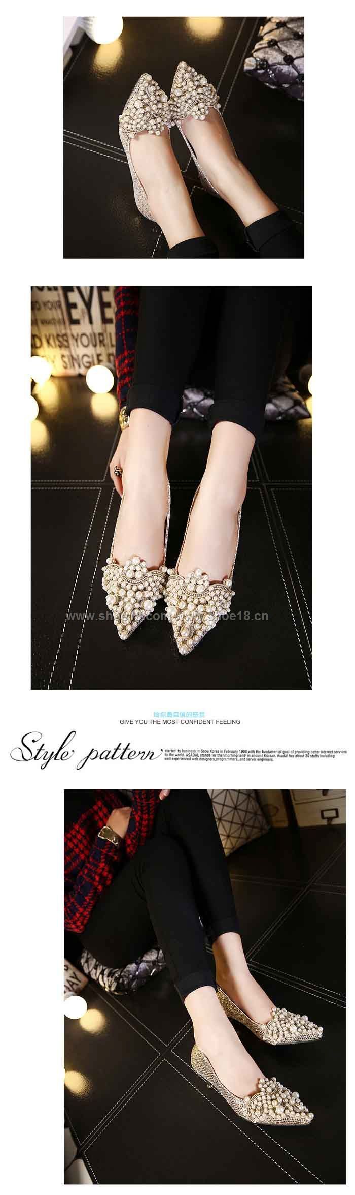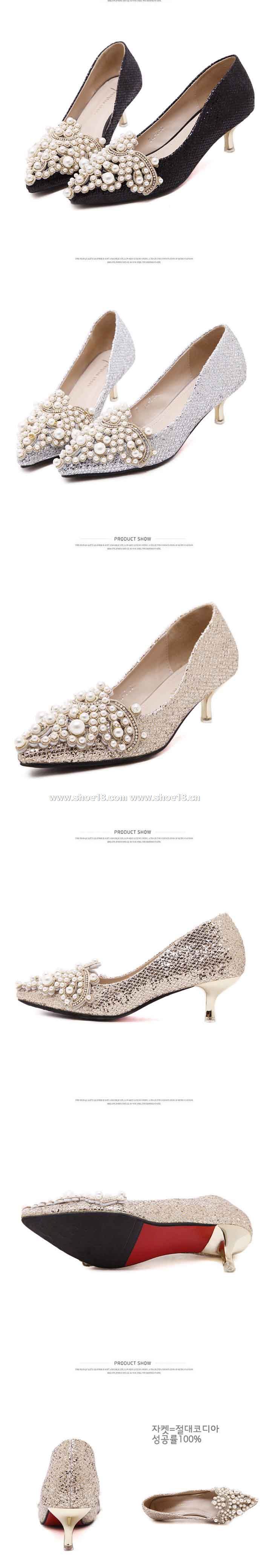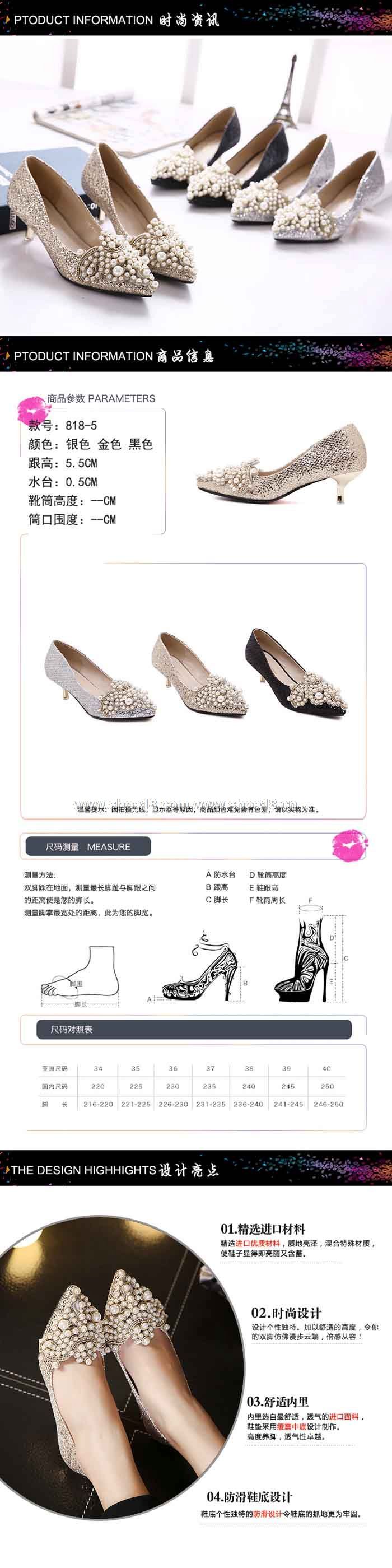 鞋面材質:亮片布+精美珍珠装饰