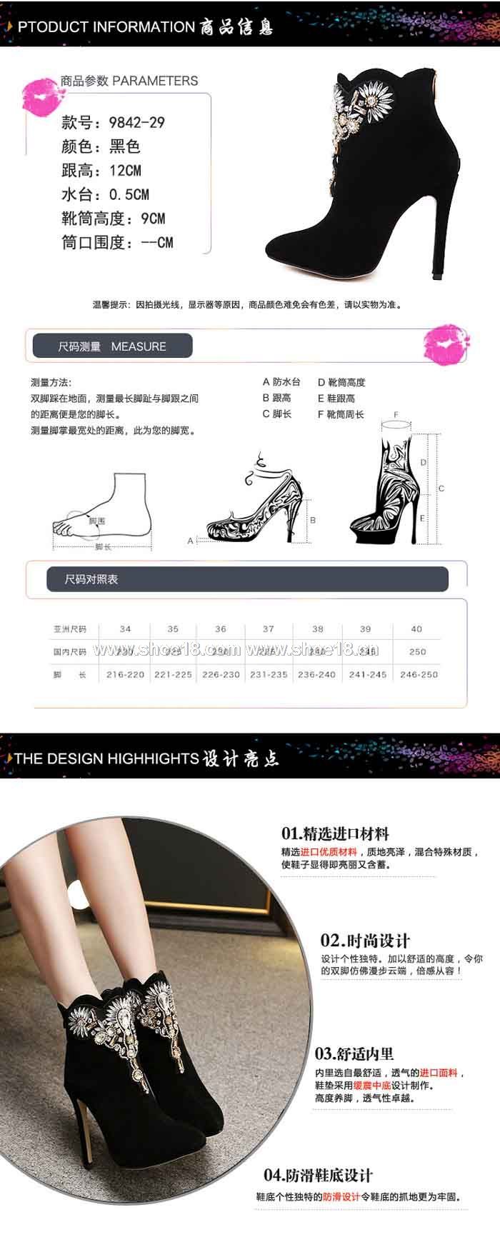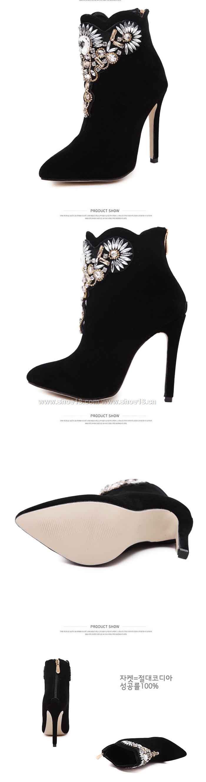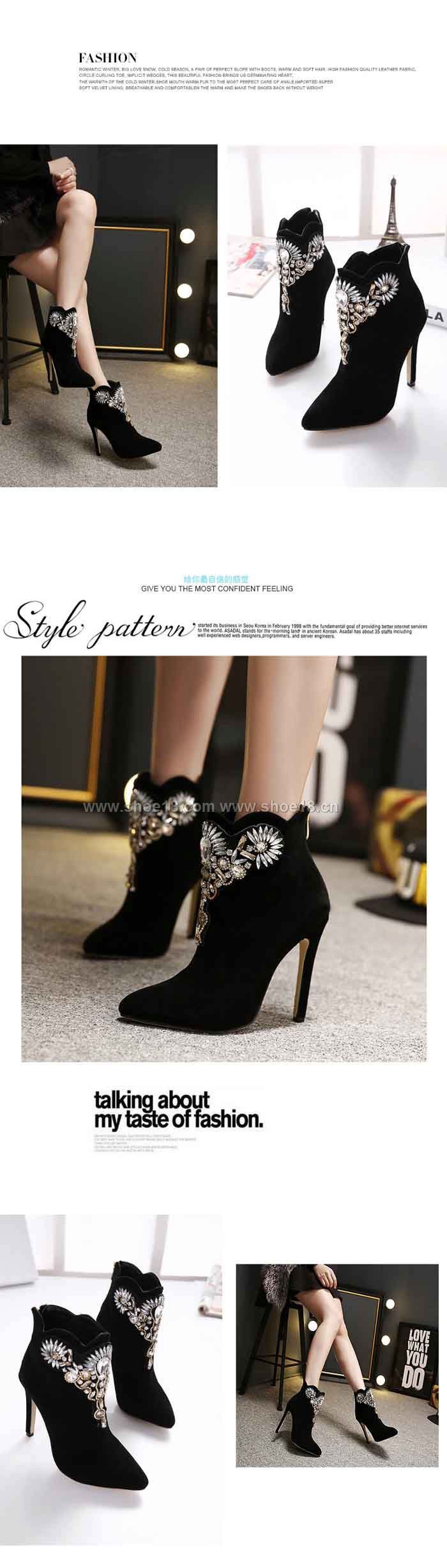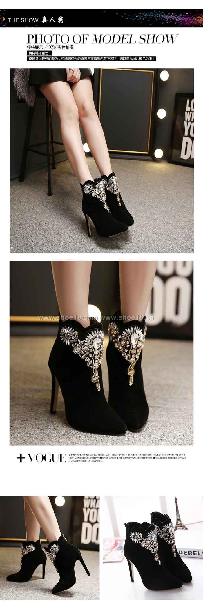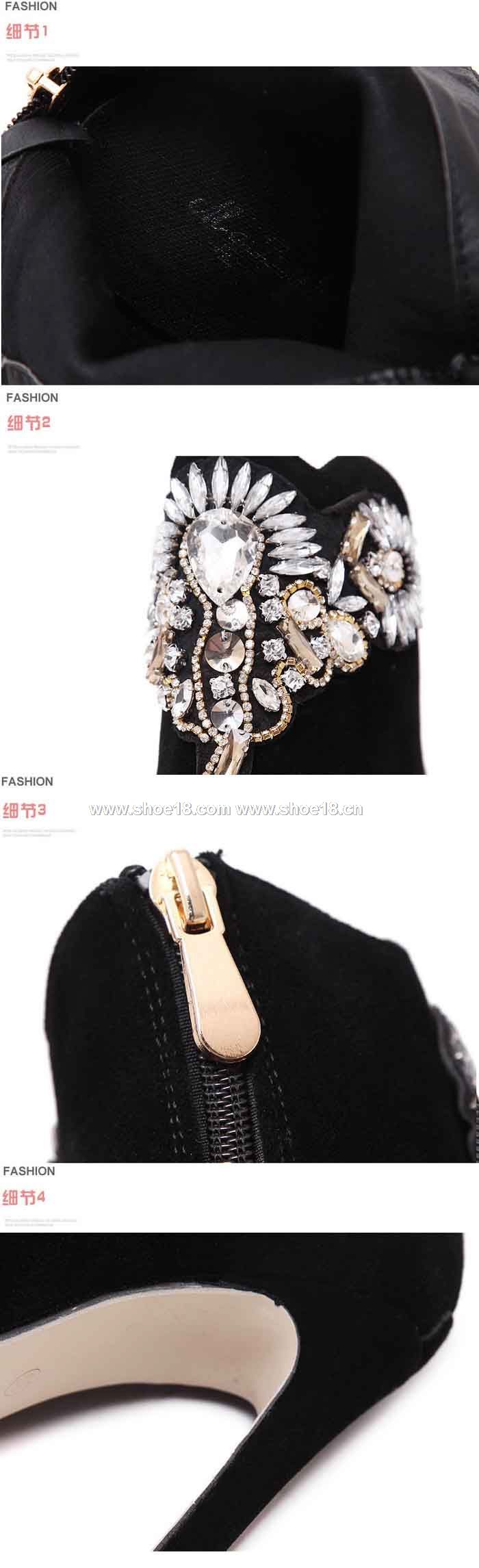 鞋面材質:优质进口绒+高档水钻