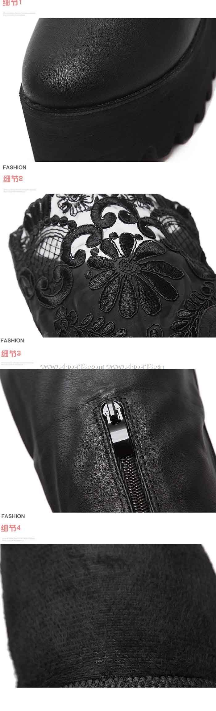 鞋面材質:优质皮革+蕾丝网布