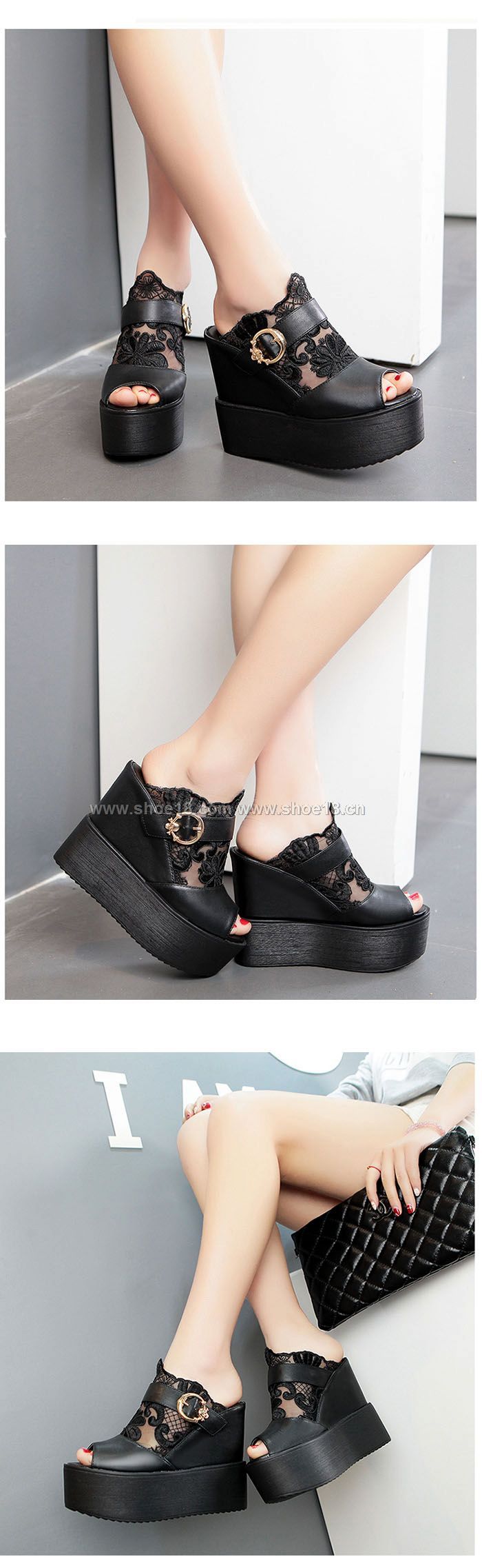 鞋面材質:优质皮革+蕾丝网布
