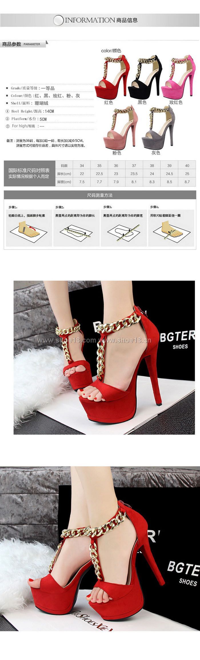 鞋跟高度:约14公分