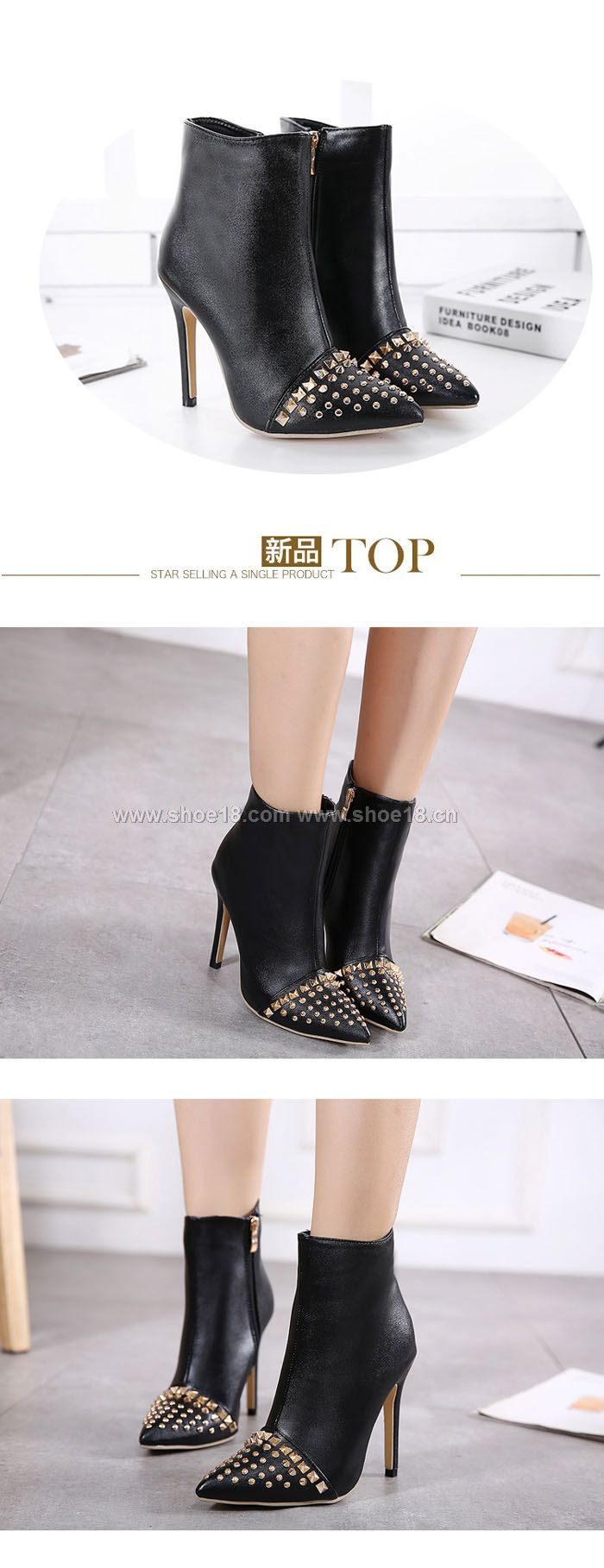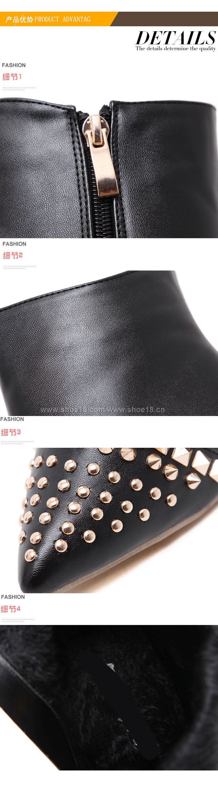 鞋面材質:优质皮革+铆钉