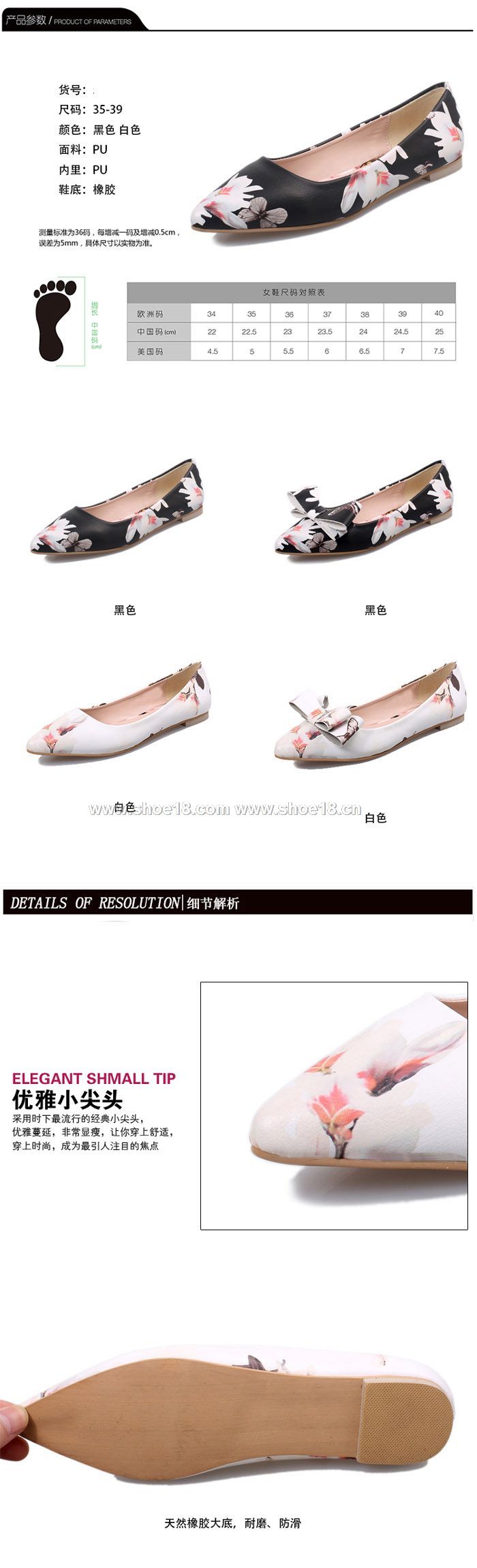 商品顏色:白色平底 黑色平底 黑色蝴蝶结平底 白色蝴蝶结平底