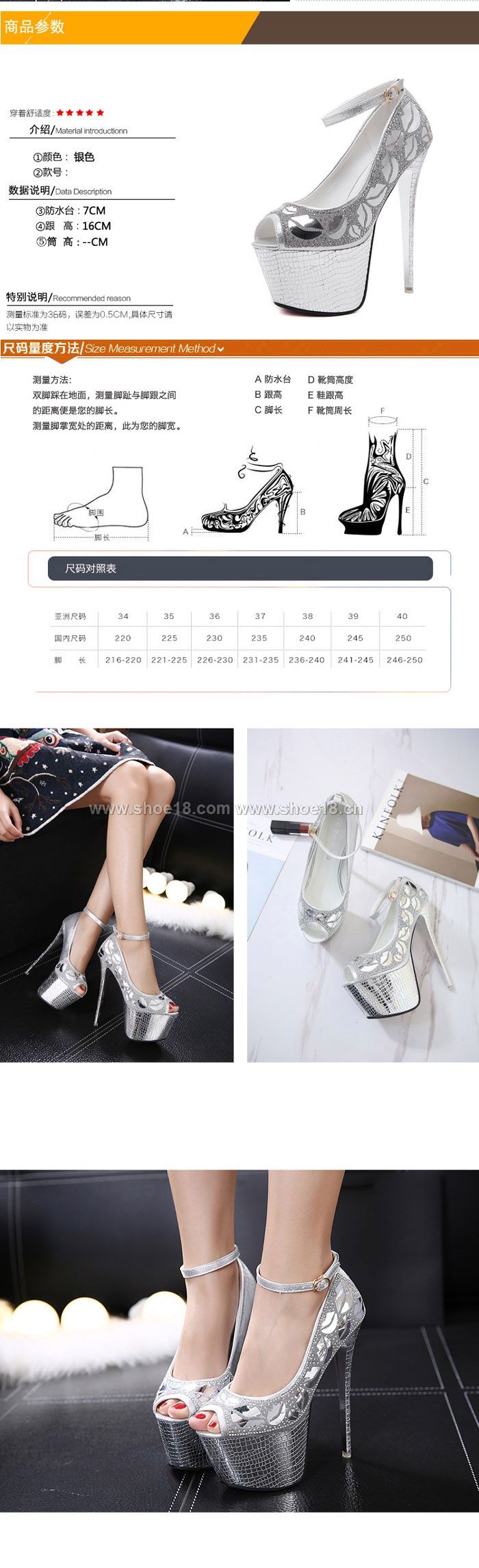 鞋跟高度:约16公分