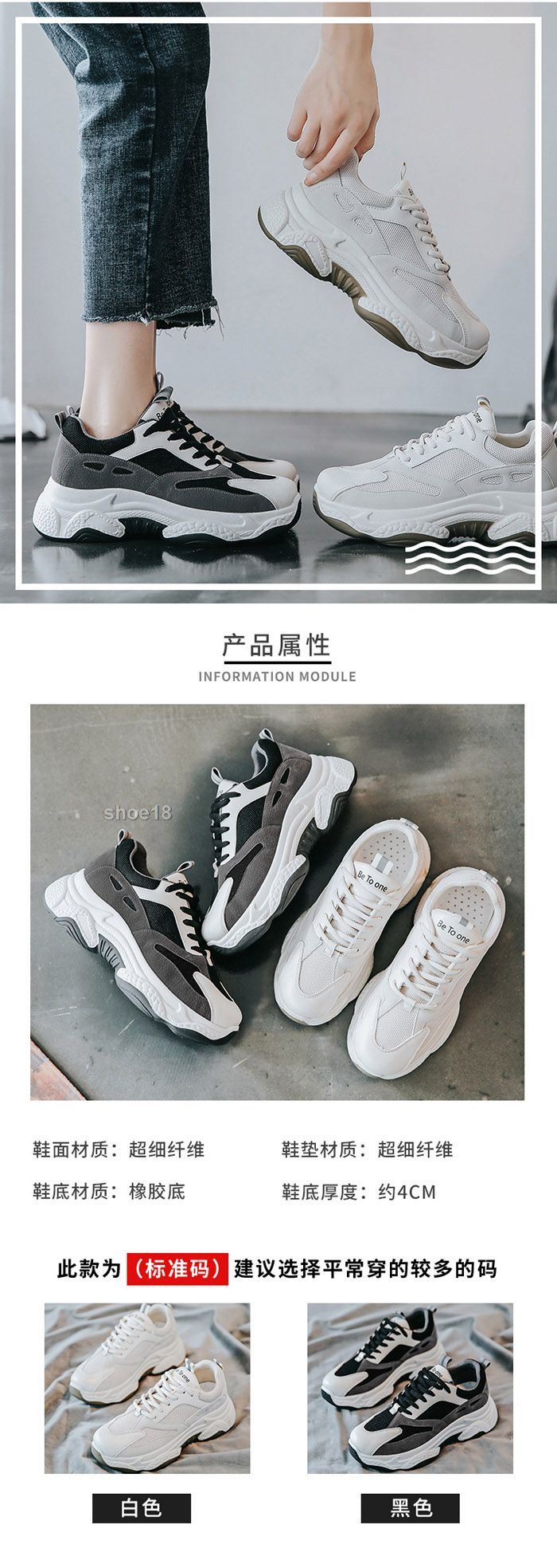 此款有 黑色 白色 尺碼範圍35-40码(此鞋偏小码 建议拍大一码)