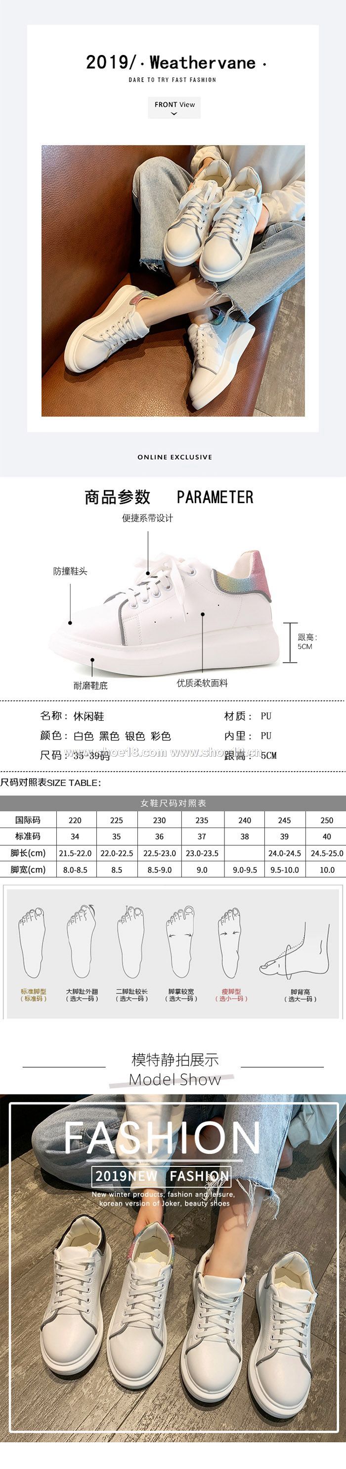 此款有 黑色 银色 白色 彩色 尺碼範圍35-39碼