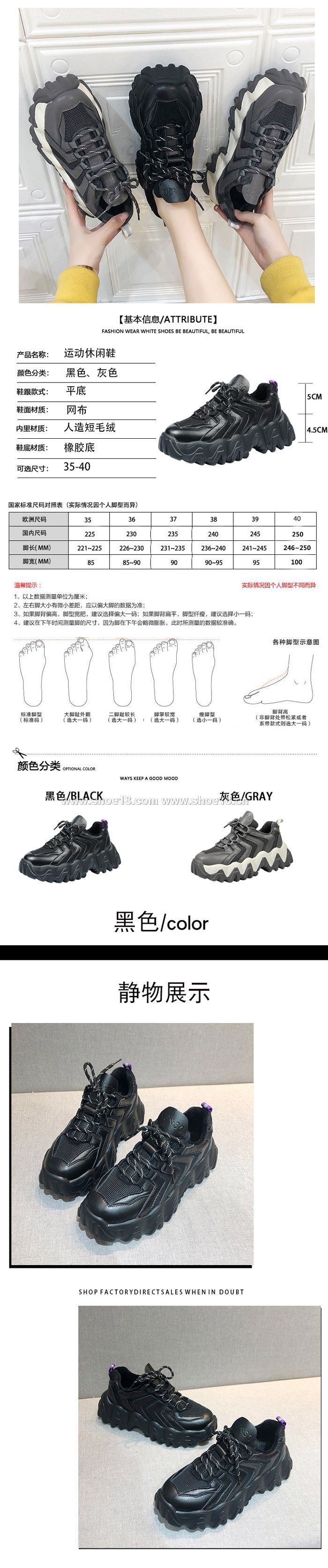 此款有 黑色 灰色 尺碼範圍35-40码