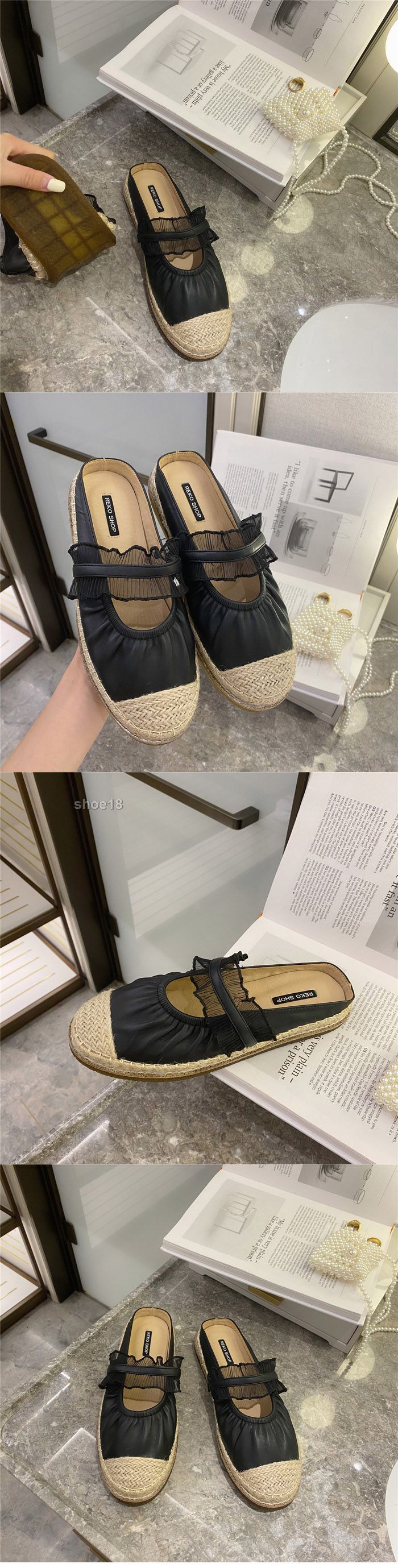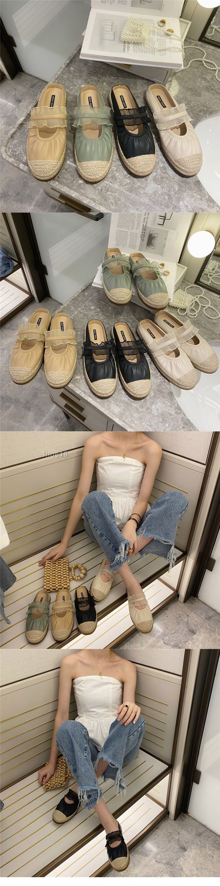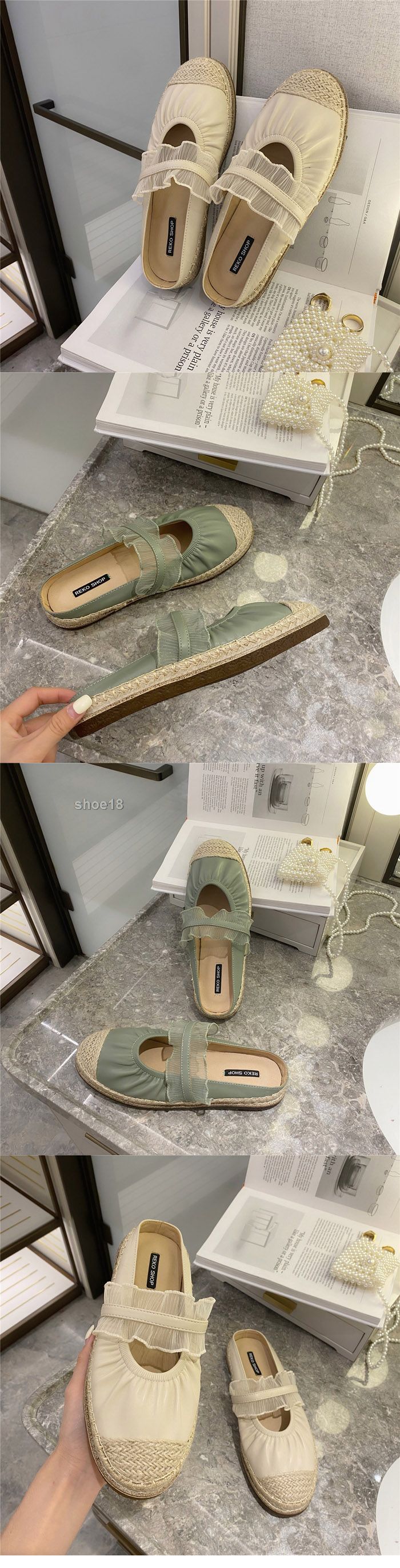 此款有 米白色 黑色 杏色 绿色 尺碼範圍35-39碼